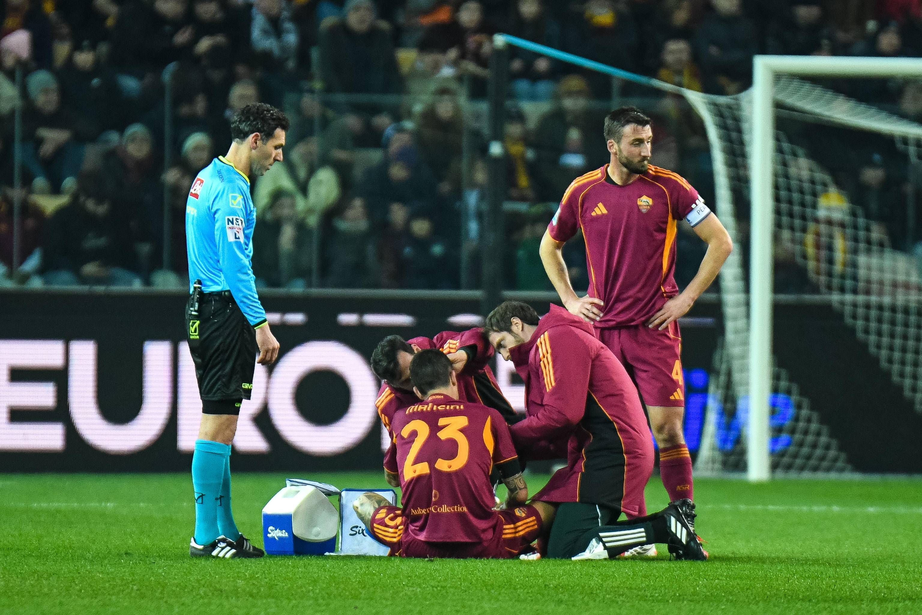 เมื่อวันที่ 2 กุมภาพันธ์ นักเตะโรม่า มานชินี (ด้านล่าง) ได้รับการรักษาอาการบาดเจ็บ. ซินหัว/อีพีเอ