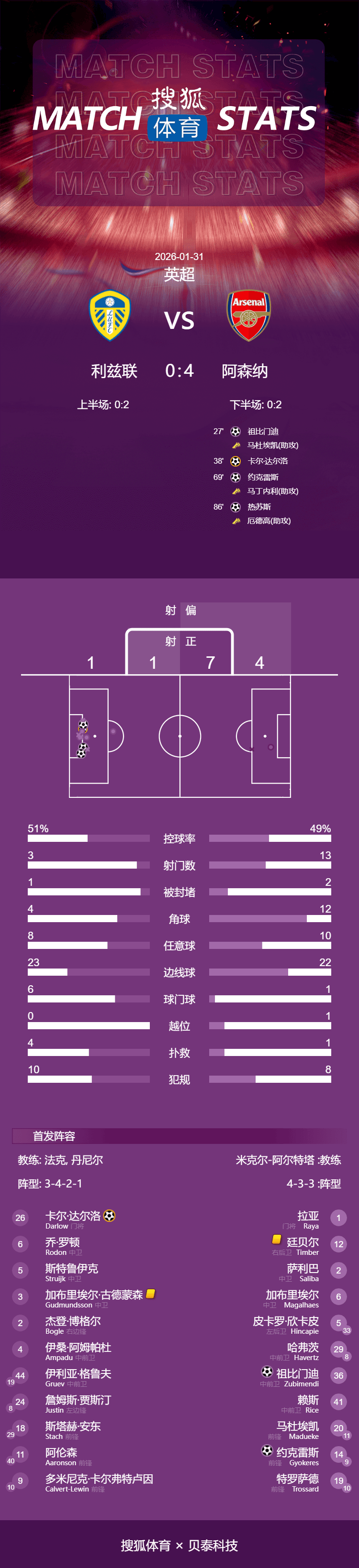 เวลา 23:00 น. ตามเวลาปักกิ่ง วันที่ 31 มกราคม อาร์เซนอลพบกับลีดส์ ยูไนเต็ด ในเกมพรีเมียร์ลีกนัดที่ 24 ของฤดูกาล ในครึ่งแรก มาติเต้ ซึ่งได้ลงเล่นแทนซาก้า ทำแอสซิสต์ให้ซัวเรซยิงประตูแรก ก่อนจะยิงเข้าประตูตัวเอง ทำให้อาร์เซนอลนำ 2-0 ในช่วงพักครึ่งในครึ่งหลัง เยตส์ยุติการไร้สกอร์ของตัวเอง ขณะที่เยซูสทำประตูในฐานะตัวสำรอง อาร์เซนอลเอาชนะลีดส์ ยูไนเต็ด 4-0 ในที่สุด หยุดสถิติไร้ชัยชนะสามนัดติดต่อกันของพวกเขาไว้ได้ ปัจจุบัน อาร์เซนอลยังคงรั้งจ่าฝูงของตารางพรีเมียร์ลีก โดยลงเล่นมากกว่าคู่แข่งหนึ่งนัด มีคะแนนนำแมนเชสเตอร์ ซิตี้ และแอสตัน วิลล่า อยู่เจ็ดแต้ม