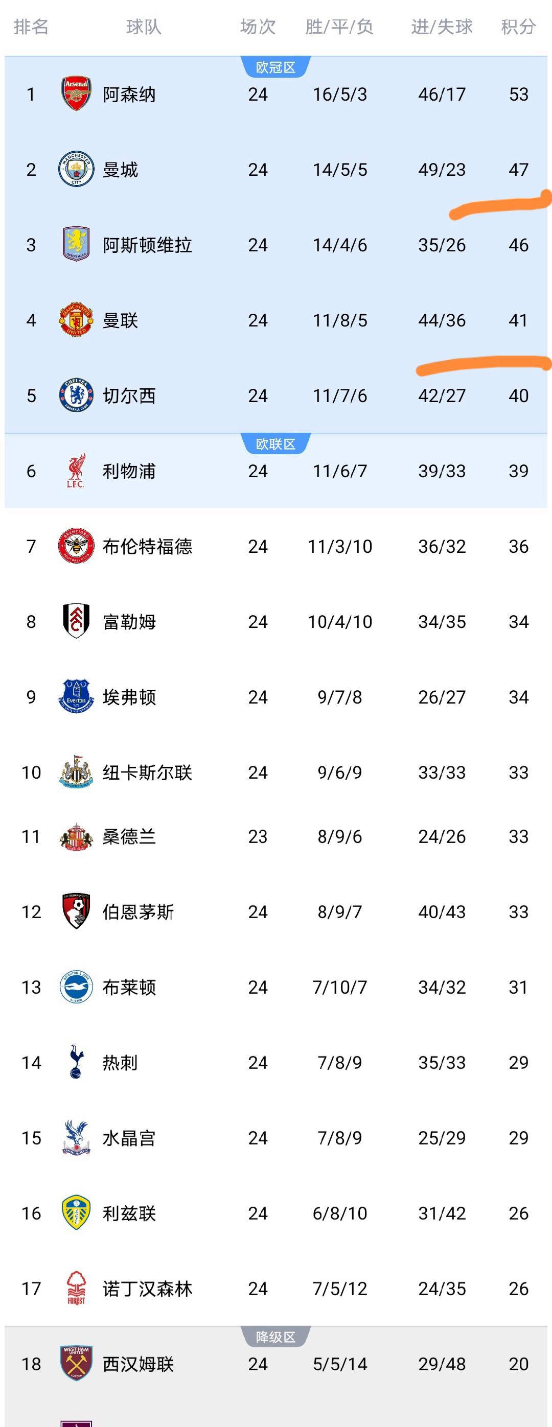ในช่วงเช้าตรู่ของวันนี้ตามเวลาปักกิ่ง การแข่งขันนัดสำคัญหลายคู่ในรอบที่ 24 ของพรีเมียร์ลีกได้จบลงแล้ว โดยสโมสรชั้นนำอย่างแมนเชสเตอร์ ยูไนเต็ด, แมนเชสเตอร์ ซิตี้ และแอสตัน วิลล่า ต่างลงสนามแข่งขัน ผลการแข่งขันในรอบนี้ส่งผลต่ออันดับในตารางคะแนนลีกอย่างมีนัยสำคัญ ด้านล่างนี้คือสรุปผลการแข่งขันและอันดับล่าสุดในตารางลีก