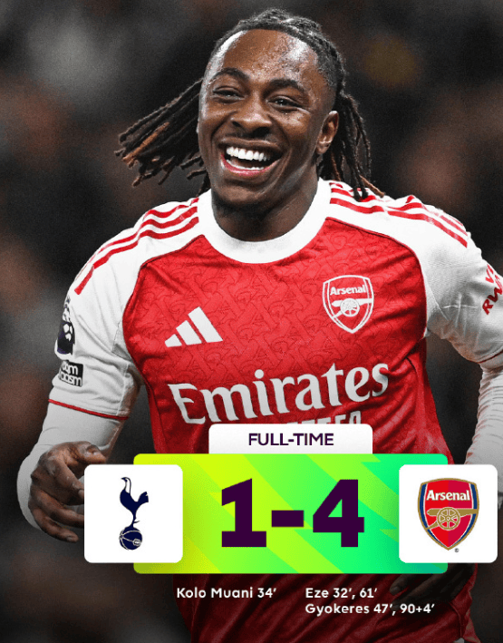 ในนาทีที่ 90 บวก 4 นาที ทีมปืนใหญ่ได้ทำการโจมตีอย่างไหลลื่น โอเดการ์ด ซึ่งเพิ่งถูกเปลี่ยนตัวลงมา ได้ผสานกับทีมอย่างรวดเร็ว เมื่อได้รับบอล เขาได้ส่งบอลทะลุช่องอย่างแม่นยำเข้าไปในเขตโทษ จอร์เกนเซ่น ซึ่งอยู่ในเขตโทษได้ควบคุมบอลไว้ก่อนที่คู่แข่งจะเข้ามาขวาง ก่อนที่จะยิงลูกอย่างแรงทำให้สกอร์กลายเป็น 4-1 จอร์เกนเซ่น ทำประตูที่สองของตัวเองได้สำเร็จ ทำให้สกอร์สุดท้ายเป็น 4-1ตลอดการแข่งขัน อาร์เซนอลครองเกมด้วยสถิติครองบอล 57.4% ยิงทั้งหมด 17 ครั้ง (เข้ากรอบ 8 ครั้ง) และจ่ายบอลสำคัญ 64 ครั้ง – เหนือกว่าท็อตแนมในทุกสถิติอย่างชัดเจน สเปอร์สทำได้เพียง 3 ครั้งในการยิง โดยมีค่า xG ต่ำกว่า 0.1 และสัมผัสบอลในเขตโทษเพียงเศษเสี้ยวของอาร์เซนอล ซึ่งแสดงให้เห็นถึงความแตกต่างในคุณภาพระหว่างทั้งสองทีมอย่างชัดเจนอาร์เซนอลทำการตัดบอลสำเร็จ 11 ครั้งและเข้าสกัดสำเร็จ 16 ครั้ง โดยรักษาการกดดันสูงอย่างต่อเนื่องตลอดทั้งเกม ทั้งสองประตูในครึ่งหลังเกิดจากการโต้กลับที่รวดเร็วและการกดดันไปข้างหน้าอย่างไม่หยุดยั้ง ซึ่งแสดงให้เห็นถึงความสำเร็จของแผนการเล่นของมิเกล อาร์เตต้า