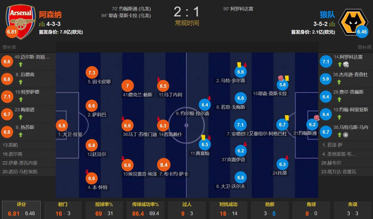 เวลา 04:00 น. ตามเวลาปักกิ่ง วันที่ 14 ธันวาคม การแข่งขันพรีเมียร์ลีกในรอบที่ 16 ได้มีการพบกันระหว่างสองทีมที่อยู่ท้ายตาราง โดยทีมจ่าฝูงอย่างอาร์เซนอลเปิดบ้านต้อนรับการมาเยือนของทีมบ๊วยอย่างวูล์ฟส์