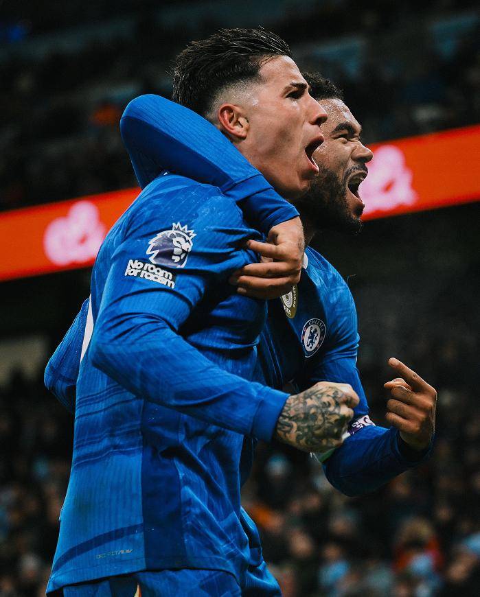 ในนาทีที่ 95 ของเวลาทดเจ็บ เชลซีที่บุกอย่างบ้าคลั่งในช่วงท้ายเกมก็ประสบความสำเร็จในที่สุด กุสโต้เปิดบอลจากฝั่งขวา และเอนโซ่พุ่งเข้าชาร์จที่เสาแรกโหม่งเข้าไปตุงตาข่าย ตีเสมอให้กับทีมได้สำเร็จ ส่งผลให้เชลซีบุกมาเสมอแมนเชสเตอร์ ซิตี้ 1-1 คว้าหนึ่งแต้มอันล้ำค่าจากทีมแกร่งอย่างสกายบลูส์ในเกมแรกนับตั้งแต่ปลดมารีสกาออกจากตำแหน่ง