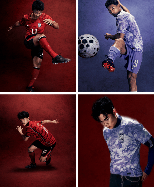 2. ทีมฟุตบอลชายของเกาหลีประกาศเสื้อฟุตบอลโลกสีแดงและสีม่วงกลายเป็นโทนของการแข่งขัน