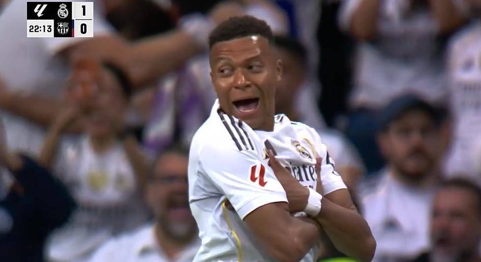 ในนาทีที่ 22 คีเลียน เอ็มบัปเป้ ทำให้แฟนบอลเจ้าบ้านโล่งอกในที่สุด เมื่อเขาได้รับบอลทะลุจากจู๊ด เบลลิงแฮม ก่อนจะหลุดเข้าไปดวลกับผู้รักษาประตู และยิงเข้าไปอย่างใจเย็น ส่งให้เรอัล มาดริด ขึ้นนำ 1-0 ประตูนี้ยุติการไร้สกอร์ในเกมเอล กลาซิโก ของเขา และพาเรอัล มาดริด หลุดพ้นจากเงาของประเด็นข้อถกเถียงเรื่องวีเออาร์