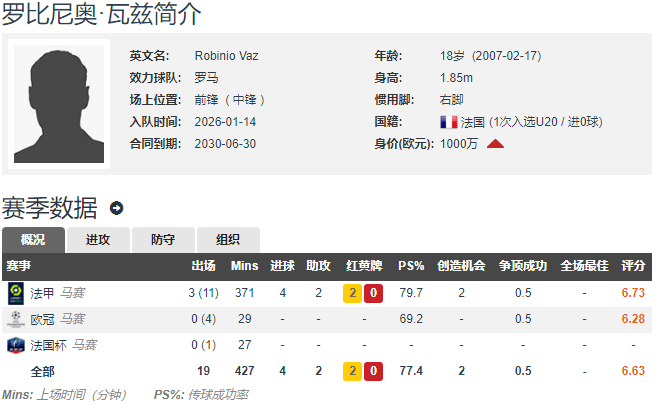โรม่าได้ทำการเซ็นสัญญาอย่างเป็นทางการกับโรบินโญ่ วาซ กองหน้าวัย 18 ปีจากมาร์กเซยเป็นที่เรียบร้อยแล้ว โดยค่าตัวในการย้ายทีมอยู่ที่ประมาณ 22 ล้านยูโร สโมสรได้ประกาศเมื่อวันพฤหัสบดี