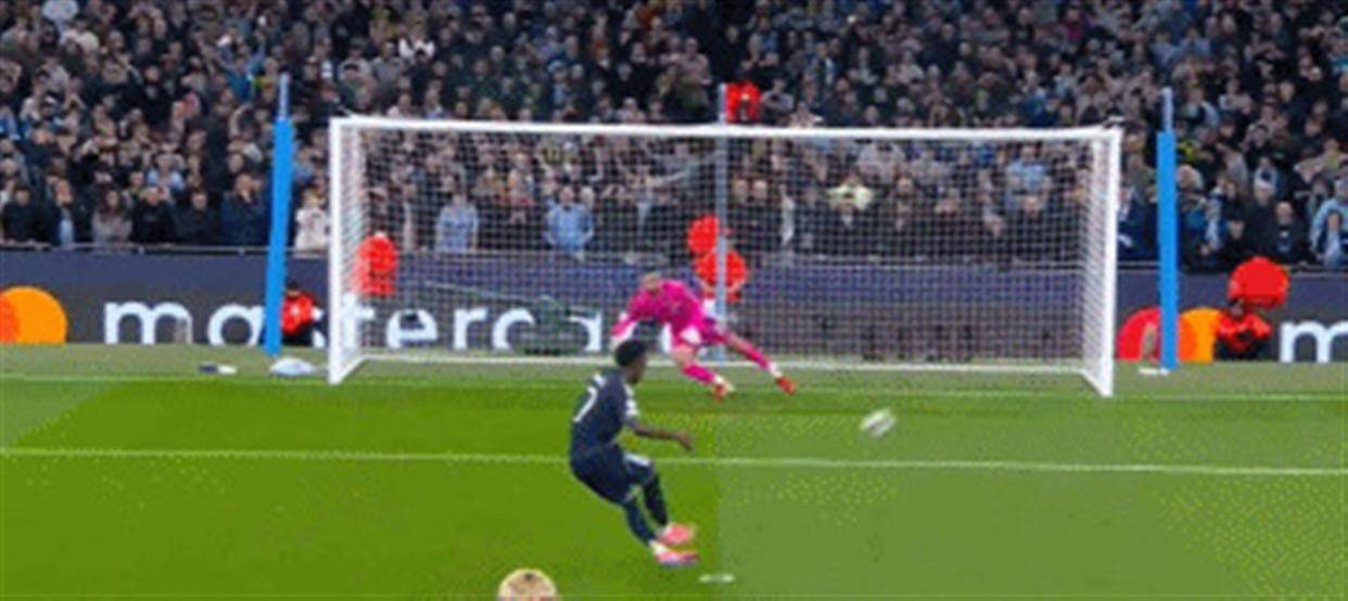 ในความโกลาหล Brahin Dias ส่งบอลให้ประตูอีกครั้ง และ Vinicius ที่ตามมาที่ด้านหลังยิงบอล เห็นบอลเขากำลังจะเข้าตาข่าย เบอร์นาดอร์ ซิลวา กัปตันทีมแมนเชสเตอร์ ซิตี้ ซึ่งยืนอยู่บนเส้นประตู ยืดแขนออกโดยไม่รู้ตัวและปิดกั้นลูกบอล สนามกีฬาเอทิฮัดทั้งหมดเงียบลงทันที และทุกคนก็กลั้นหายใจและจ้องไปที่ผู้ตัดสิน Tilpan