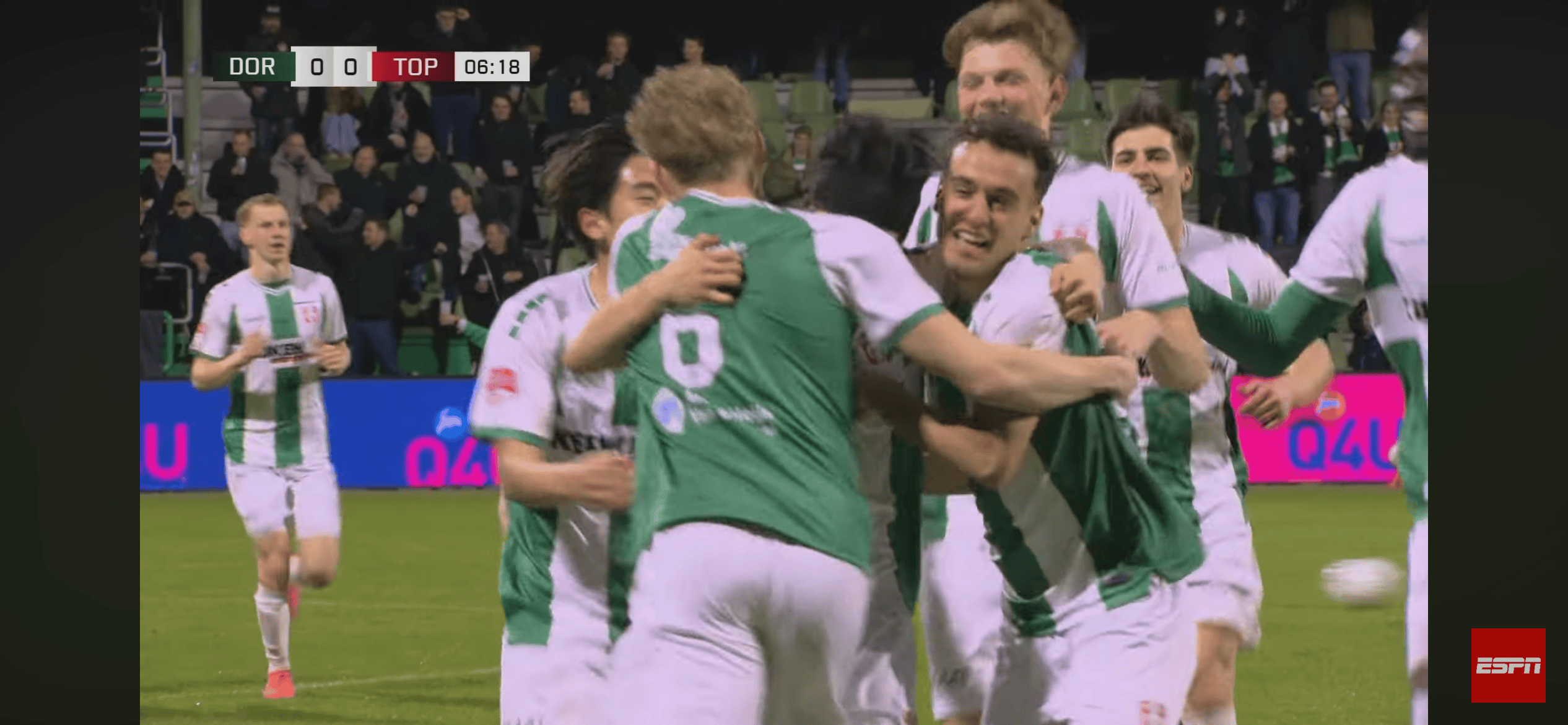 ในนาทีที่ 5 Dodler ทำไม้กางเขนจากปีกและลูกวอลเลย์ของ Yin Zhao ที่หน้าประตูถูกขวางโดยผู้พิทักษ์ของคู่ต่อสู้ มันเกิดขึ้นที่ลูกบอลตกลงไปที่เท้าของ Pei Shengjun เขาไม่ได้หยุดบอลและยิงตรงมุมบนขวาช่วยให้ทีมขึ้นนำ 1-0 นี่ยังเป็นประตูแรกของเซียวเป่ยที่เสี่ยวเป่ยทำประตูในฤดูกาลนี้ หลังจากนั้น Dodrecht มีโอกาสอีกครั้งและทำประตูได้สำเร็จ ในเวลาเพียง 10 นาที ทีมนำ 2-0 ไปแล้ว และหยินจ้าวหยงก็โจมตีคู่ต่อสู้ด้วยความเร็วครั้งแล้วครั้งเล่า