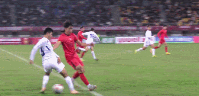 เมื่อเผชิญกับสถานการณ์ที่ต้องชนะเพื่อคว้าแชมป์ ทีมจีนได้ทำการหมุนเวียนผู้เล่นอย่างกว้างขวางเพื่อพัฒนาศักยภาพของนักเตะ โดยให้ผู้เล่นตัวหลักหลายคนนั่งสำรอง ซึ่งส่งผลกระทบโดยตรงต่อการเปลี่ยนผ่านระหว่างเกมรุกและเกมรับ โดยเฉพาะอย่างยิ่งการขาดการจัดระเบียบเกมรุกที่ชัดเจน น่าสังเกตว่าพวกเขาไม่สามารถยิงเข้ากรอบได้เลยแม้แต่ครั้งเดียวตลอดครึ่งแรก ภัยคุกคามเดียวของทีมมาจากจังหวะเปิดบอลของ กุ้ย จีเหวิน ที่เกือบจะกลายเป็นประตูทำเข้าประตูตัวเองของผู้เล่นฝ่ายตรงข้าม สกอร์ยังคงอยู่ที่ 0-0 เมื่อจบครึ่งแรก