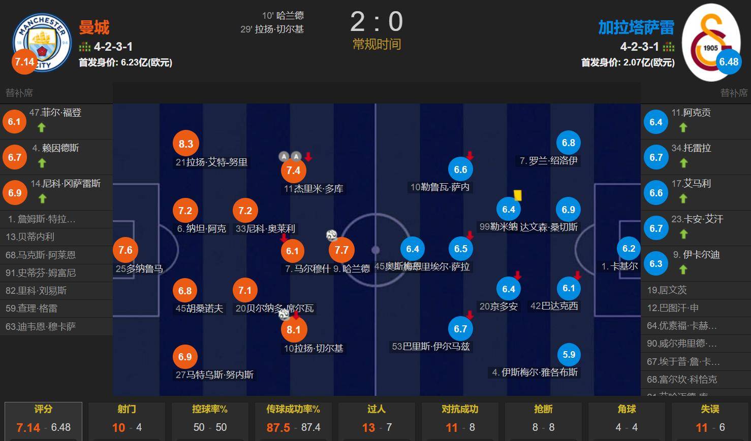 ตลอดการแข่งขัน การครองบอลถูกแบ่งอย่างเท่าเทียมกันระหว่างทั้งสองทีม ซึ่งบ่งชี้ว่าแมนเชสเตอร์ ซิตี้ใช้แนวทางที่ระมัดระวัง - เล่นอย่างปลอดภัย ถ้าจะพูดอย่างนั้น - แต่มันกลับได้ผลอย่างมีประสิทธิภาพสูงแมนเชสเตอร์ ซิตี้ ยิงได้ 10 ครั้ง โดยเข้ากรอบ 5 ครั้ง; กาลาตาซาราย ยิงได้ 4 ครั้ง ทั้งหมดเข้ากรอบ ชัยชนะของซิตี้เป็นชัยชนะที่สู้กันอย่างหนักจริงๆ! แต่ผลลัพธ์เป็นที่น่าพอใจ สามารถคว้าตั๋วเข้ารอบโดยตรงและหลีกเลี่ยงการเพลย์ออฟสองนัดในเดือนกุมภาพันธ์ได้ มิฉะนั้น การต้องเจอกับ 5 นัดในพรีเมียร์ลีก, 1 นัดในเอฟเอคัพ และ 1 นัดในลีกภายใน 28 วัน – รวมทั้งหมด 9 นัด – จะทำให้ทั้งทีมเหนื่อยล้าอย่างมาก ตอนนี้เหลือเพียง 7 นัดเท่านั้น ภาระงานของนักเตะลดลงอย่างมาก