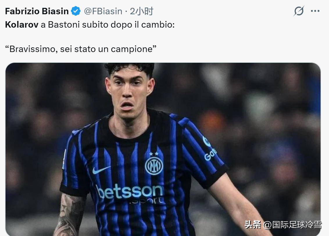 ในช่วงท้ายเกม ซิฟโก้เปลี่ยนตัวบาสโตนีออกจากสนาม ขณะที่กองหลังผู้แข็งแกร่งเดินออกจากสนาม โค้ชผู้ช่วยของอินเตอร์ โคลาลอฟ ได้ตะโกนเรียกเขาว่า: "ทำได้ดีมาก คุณคือแชมป์ตัวจริง!"