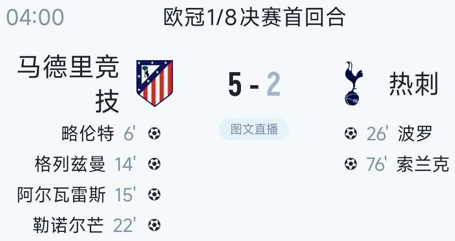 ในช่วงเช้าของวันที่ 11 มีนาคม ตามเวลาปักกิ่ง เมื่อบาเยิร์น มิวนิค ขึ้นนำ 3-0 ในอิตาลีใน 25 นาที แอตเลติโคตา ประเทศสเปน ก็ทำลายแนวรับของท็อตแนมด้วยความเร็วเกือบเท่าๆ กัน