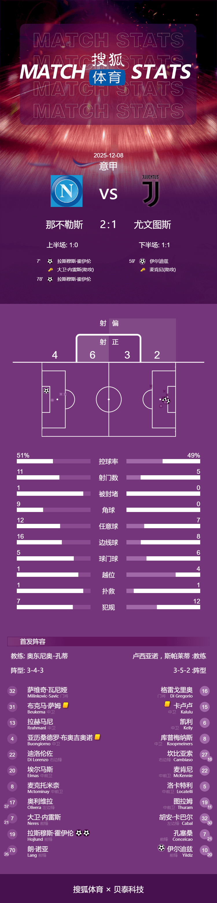 เวลา 03:45 น. ตามเวลาปักกิ่ง วันที่ 8 ธันวาคม นาโปลีเปิดบ้านต้อนรับยูเวนตุสในการแข่งขันเซเรีย อา นัดที่ 14 ในครึ่งแรก ฮอยลุนด์ทำประตูแรกจากแอสซิสต์ของเนเรส หลังจากพักครึ่ง อิลดิซทำประตูตีเสมอให้กับยูเวนตุส แต่ฮอยลุนด์ก็โหม่งทำประตูที่สองของตัวเองได้สำเร็จ ในที่สุด นาโปลีก็เอาชนะยูเวนตุสไปได้ 2-1