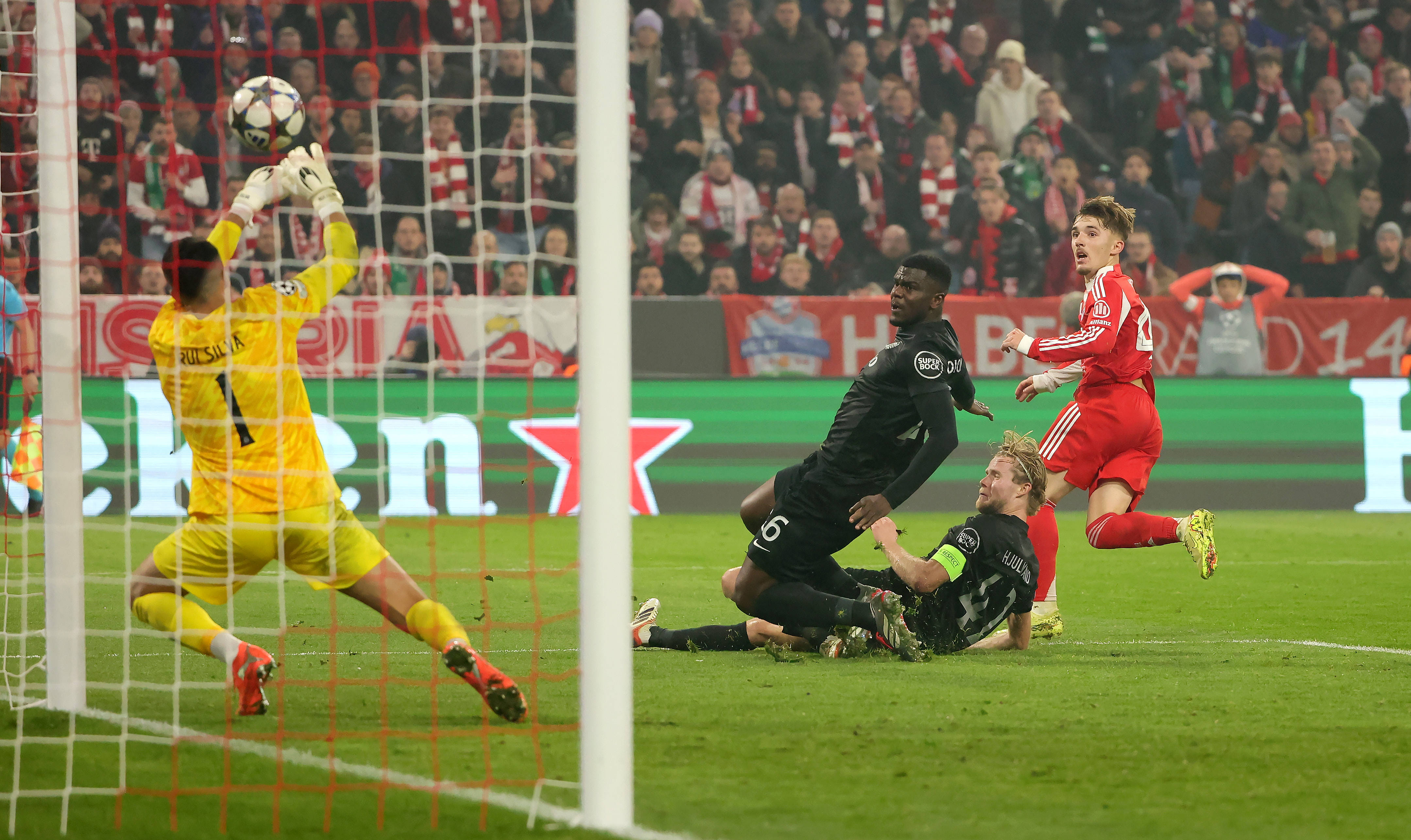 ในการพบกันครั้งก่อนกับอาร์เซนอล บาเยิร์นประสบความพ่ายแพ้ครั้งแรกของฤดูกาล ในครั้งนี้ แชมป์บุนเดสลีกาได้กดดันอย่างไม่ลดละตั้งแต่เริ่มเกม คาร์ลทำประตูได้ในนาทีที่หก แต่ถูกตัดสินว่าล้ำหน้า เคนและกนาบรีต่างมีโอกาสทำประตูอย่างน่าเสียดายในครึ่งแรก แต่ผู้รักษาประตูของสปอร์ติ้ง ซีพี ซิลวา เซฟได้อย่างยอดเยี่ยมหลายครั้ง