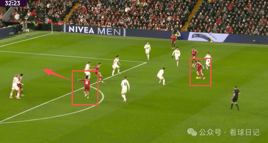 หลังจากถือบอลไว้ชั่วครู่ โจนส์ยังมีโอกาสที่จะส่งบอลให้โซโบตคาที่ไม่ได้ถูกประกบ แต่เขาเลือกที่จะเล่นบอลตรงไปยังเอกิติแทน ซึ่งอยู่ในตำแหน่งที่ไม่ดีนัก ส่งผลให้บอลถูกกองหลังกลางของลีดส์สกัดได้!