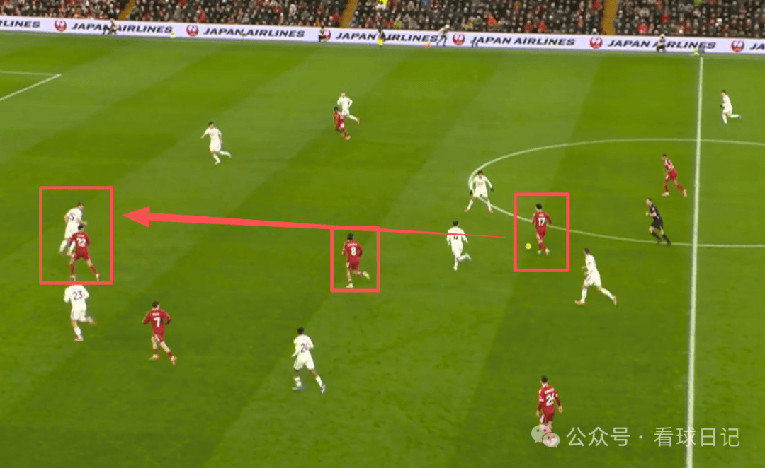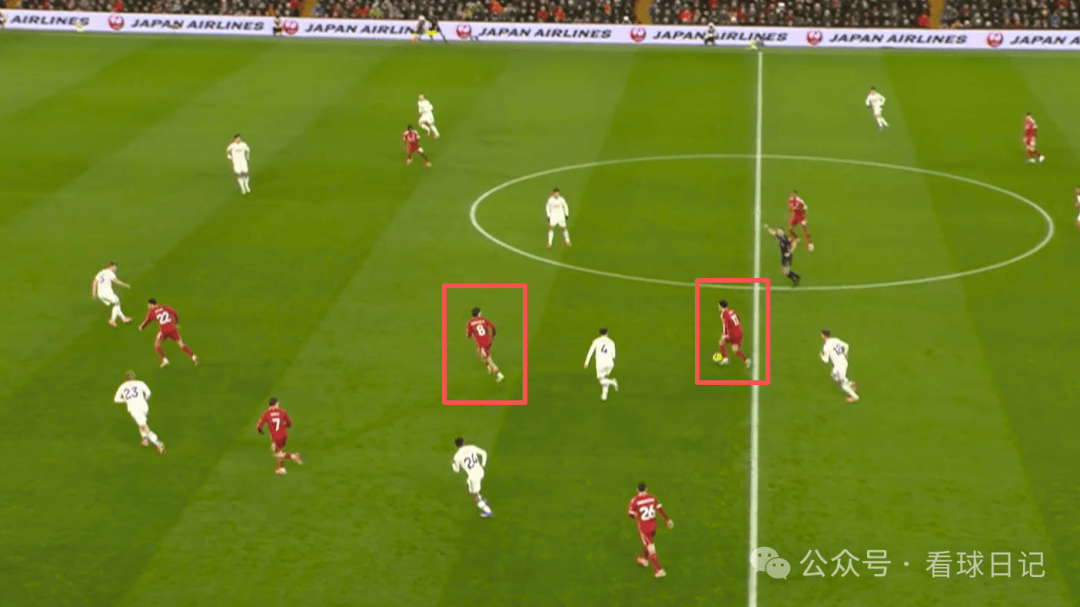 โจนส์ในตอนนี้ได้รับการสัมผัสบอลมากมายในแดนกลางด้วยร่างกายที่แข็งแกร่งและการควบคุมบอลที่ยอดเยี่ยม อย่างไรก็ตาม การเลือกส่งบอลของเขายังค่อนข้างธรรมดา ตามที่แสดงในภาพด้านบน เขาสามารถส่งบอลให้โซบอตกาได้ ซึ่งโซบอตกาจะขับเคลื่อนไปข้างหน้าทันที แต่โจนส์ยังคงยืนยันที่จะทำเอง